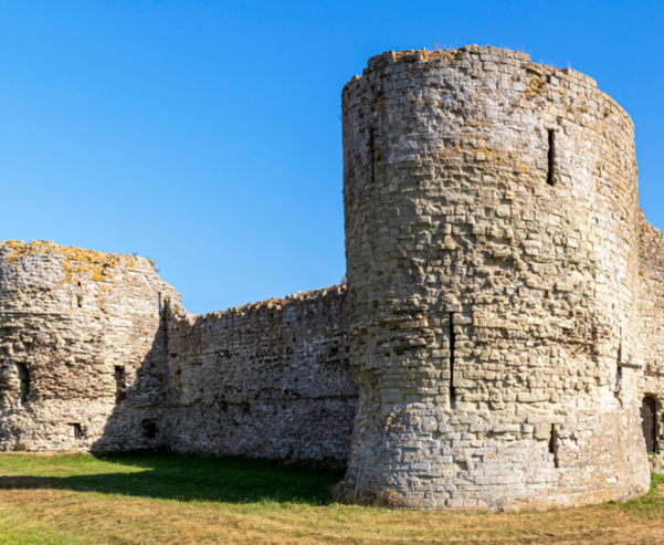 Begun in about AD 290, Pevensey was the biggest of the Roman ‘Saxon Shore’ fortresses. Its hugely impressive walls, more than 500 metres (1,640 feet) long, still stand almost to their full height. Here, in 1066, William the Conqueror landed to begin his invasion of England, building a fortress within the Roman defences. After centuries of abandonment, the ancient stronghold was pressed back into service in 1940, with machine gun posts cleverly camouflaged into its walls.